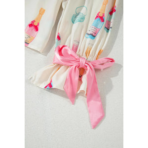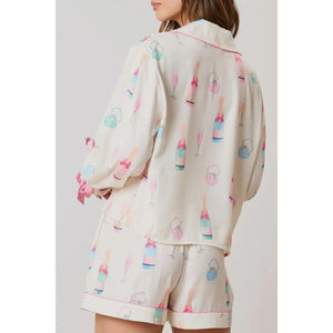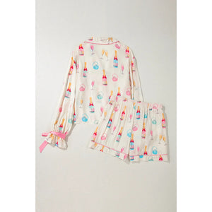 Bow Printed Collared Neck Top and Drawstring Shorts Lounge Set