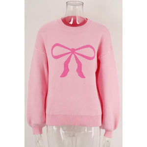 Bow Round Neck Long Sleeve Sweater