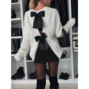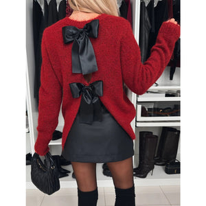 Bow Slit Back Round Neck Sweater