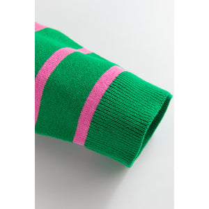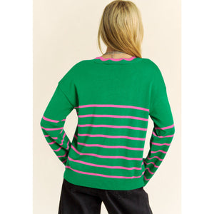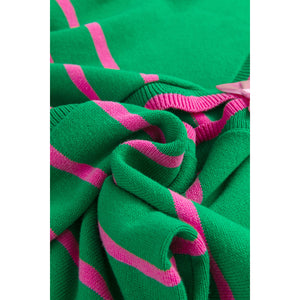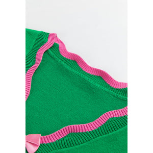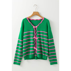 Bow Striped V-Neck Long Sleeve Cardigan