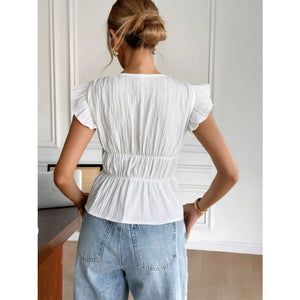 Bow V-Neck Cap Sleeve Blouse