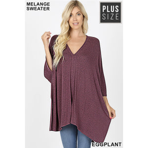 BRUSHED MELANGE SWEATER FABRIC OVERSIZE V-NECK PONCHO