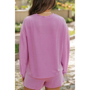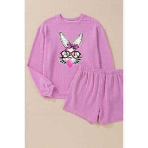 Bubble Gum Rabbit Sequin Corded Rib Top and Shorts Set