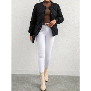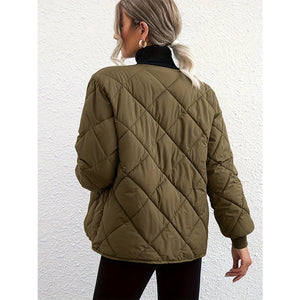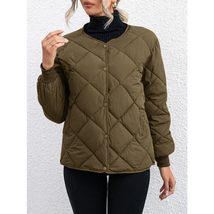 Bubble Texture Snap Down Long Sleeve Winter Coat