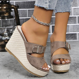 Buckle Strap Wedge Platform Sandals