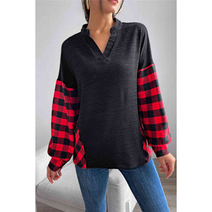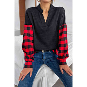 Buffalo Plaid Color Block Balloon Sleeve Top