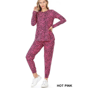 BRUSHED DTY MICROFIBER LEOPARD PRINT LONG SLEEVE TOP & JOGGER PANTS SET