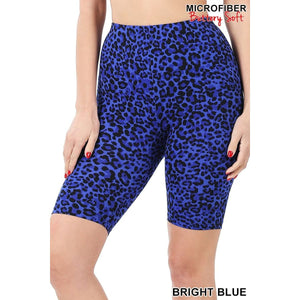 BRUSHED MICROFIBER LEOPARD PRINT BIKER SHORTS
