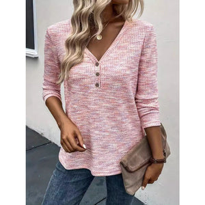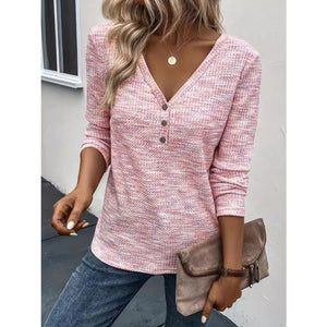 Button Detail V-Neck Long Sleeve Blouse