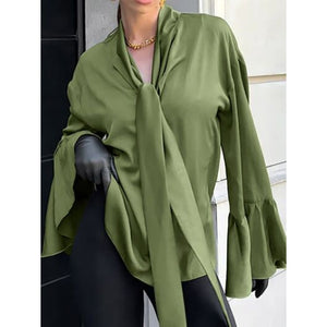 • Features: Tied, Ruffled, Buttoned