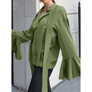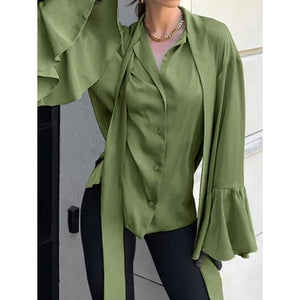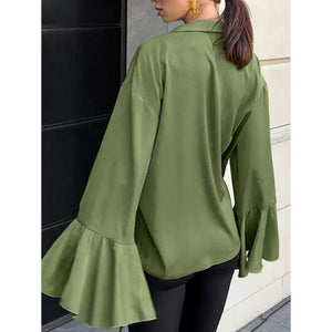 Button Down Flounce Sleeve Shirt
