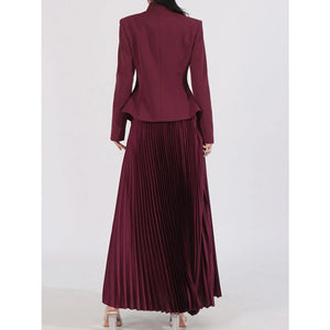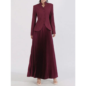 Button Up Long Sleeve Top and Pleated Skirt Set