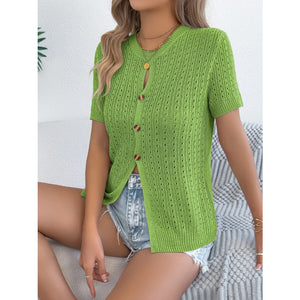 Button Up Short Sleeve Knit Cardigan