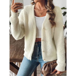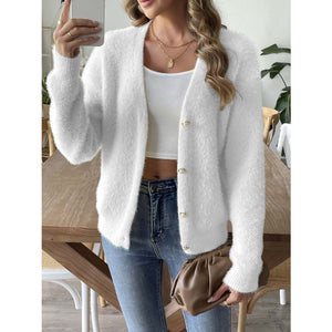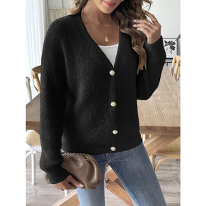 Button Up V-Neck Long Sleeve Cardigan