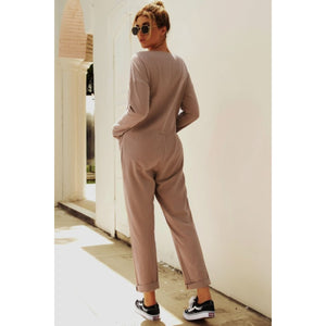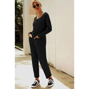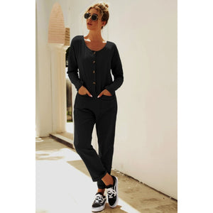 Buttoned Drop Shoulder Pocket Jumpsuit