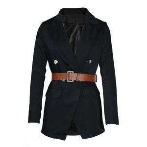 Buttoned Lapel Collar Long Sleeve Blazer
