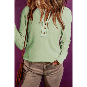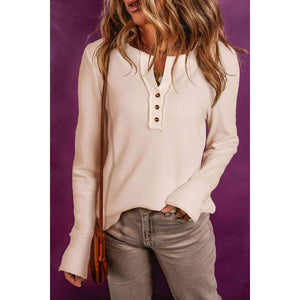 Buttoned Notched Neck Long Sleeve Top