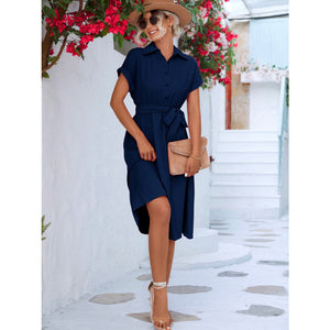 Buttoned Tie Waist Short Sleeve Dress