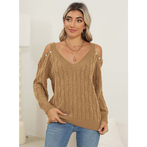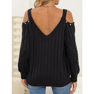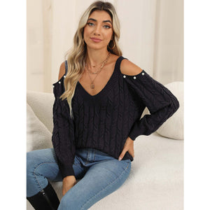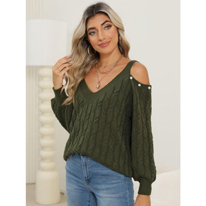 Cable-Knit Cold Shoulder Sweater