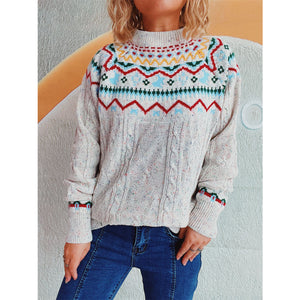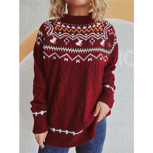 Cable-Knit Mock Neck Long Sleeve Sweater