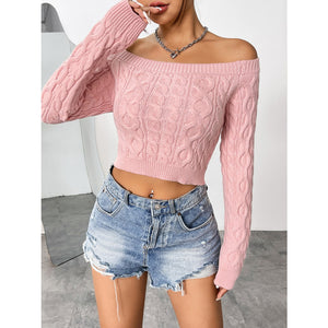 Cable-Knit Off-Shoulder Long Sleeve Knit Top