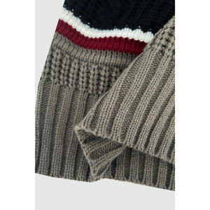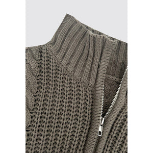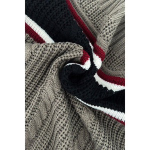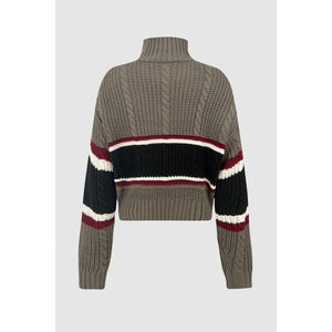 Cable-Knit Striped Quarter Zip Turtleneck Sweater