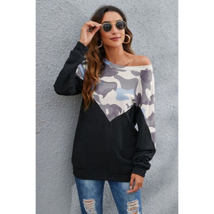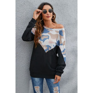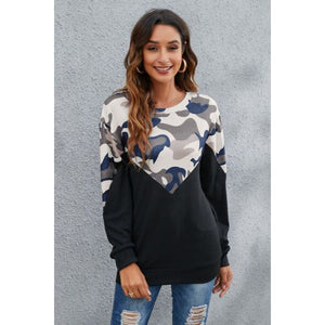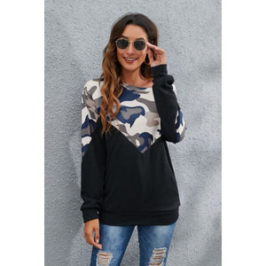 Camouflage Round Neck Long Sleeve Sweatshirt