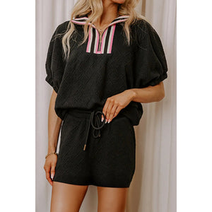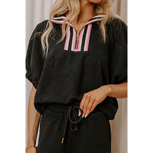 Casual Quilted Pattern Top and Skirt Two-Piece Set