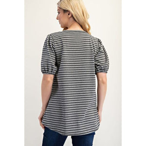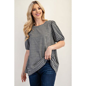 Celeste Full Size Gingham Print Top With Puff Sleeves Plus Size