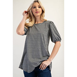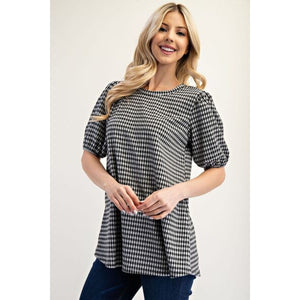 This tunic top is sophistication and class. It features gorgeous Gingham print and a round neckline with puff sleeves. The sleeves have a unique design, they have puff sleeve detail. This top is made from the softest knit you will ever wear. This top is easy to style, pair this style with your favorite bottoms, and favorite accessories! You will look effortlessly beautiful!