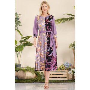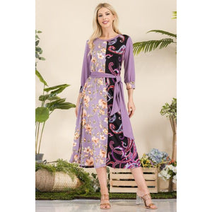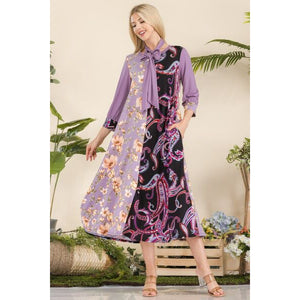Celeste Full Size Paisley And Floral Contrast Tent Midi Dress Plus Size