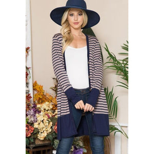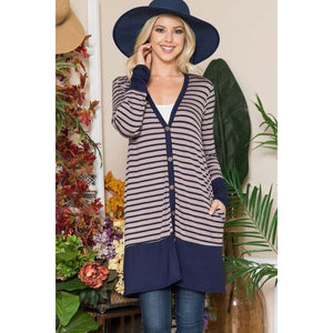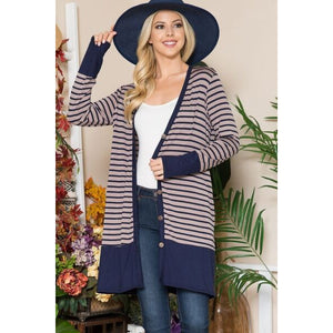 Celeste Full Size Striped Button Up Long Sleeve Cardigan Plus Size