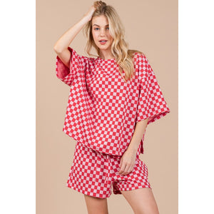 Ces Femme Checkered Round Neck Top and Shorts Set