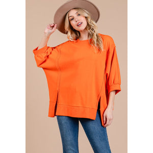 This sweatshirt features a unique design with side slits, drop shoulders, and puff sleeves for a trendy and fashionable look. The side slits add a modern touch and provide ease of movement, while the drop shoulders create a relaxed and laid-back vibe. The puff sleeves add a feminine and stylish element to the sweatshirt, making it a versatile piece for casual outings. Perfect for cooler weather, this sweatshirt offers both style and comfort. Pair it with jeans or leggings for a cozy and chic ensemble. Elevate your loungewear with this side slit drop shoulder puff sleeve sweatshirt for a trendy and relaxed look!