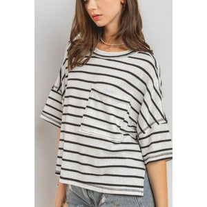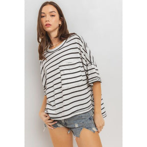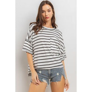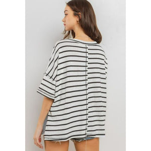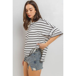 Ces Femme Side Slit Striped Round Neck Half Sleeve T-Shirt