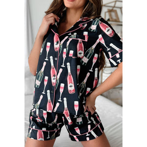 Champagne Print Short Sleeve Top and Shorts Set