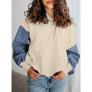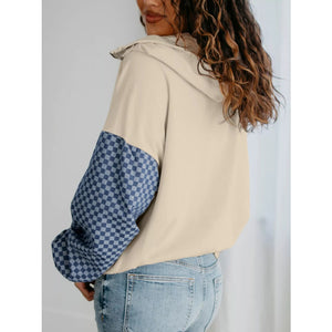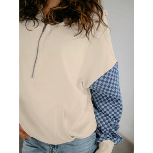 Checkered Color Block Half Zip Sweatshirt