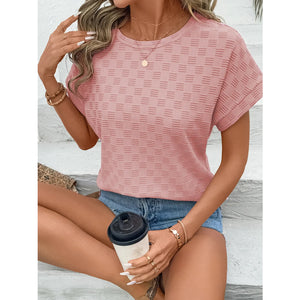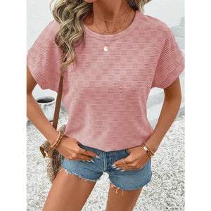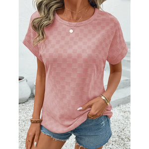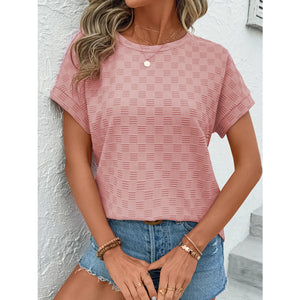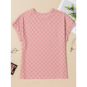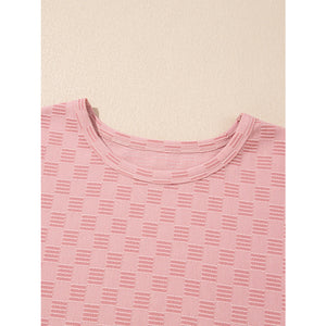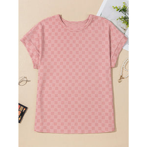 Checkered Textured Round Neck T-Shirt
