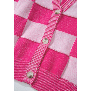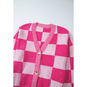 Checkered V-Neck Long Sleeve Cardigan