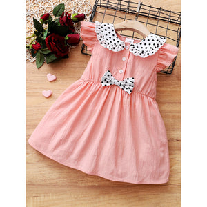 Children's Bow Peter Pan Collar Ruffle Sleeve Dress