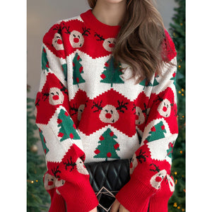 Christmas Element Round Neck Long Sleeve Sweater