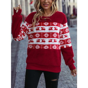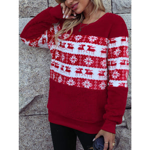 Christmas Element Round Neck Long Sleeve Sweatshirt