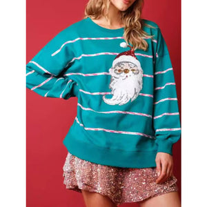 Christmas Santa Striped Long Sleeve Sweatshirt
