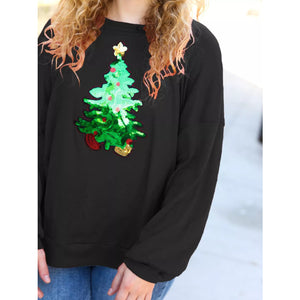 Christmas Tree Sequin Long Sleeve Sweatshirt