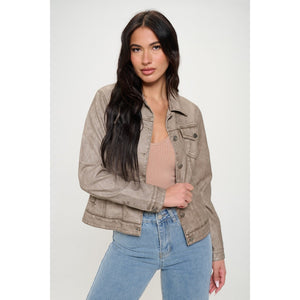 Coalition LA Button Down Cargo Vegan Leather Shacket
