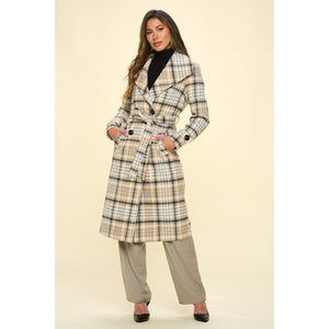 Stay on-trend this season with the Double-Breasted Plaid Coat with Belt, a stylish and versatile outerwear piece that features a lapel collar, classic plaid pattern, hidden side pockets, and button details on the sleeves. The double-button closure adds a touch of sophistication, while the included belt helps cinch the waist for a flattering silhouette. This coat is the perfect blend of fashion and function, making it ideal for a variety of occasions, from casual outings to more formal events. Elevate your winter wardrobe with this trend coat that exudes elegance and charm, ensuring you stay both warm and chic all season long.