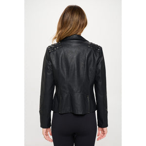 Coalition LA Studded Classic Moto Faux Leather Jacket