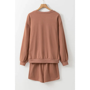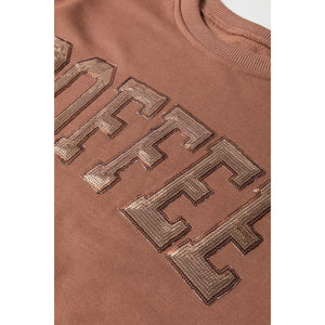 COFFEE Sequin Round Neck Long Sleeve Top and Shorts Set