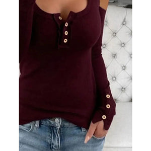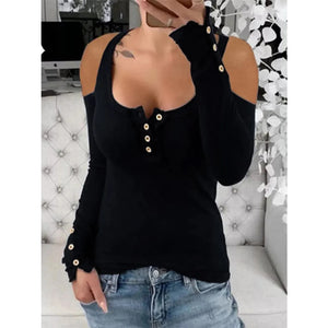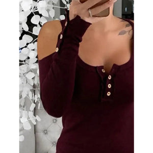 Cold Shoulder Ribbed Henley T-Shirt with Button Detail