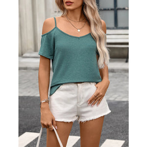 Cold Shoulder Short Sleeve Casual T-Shirt